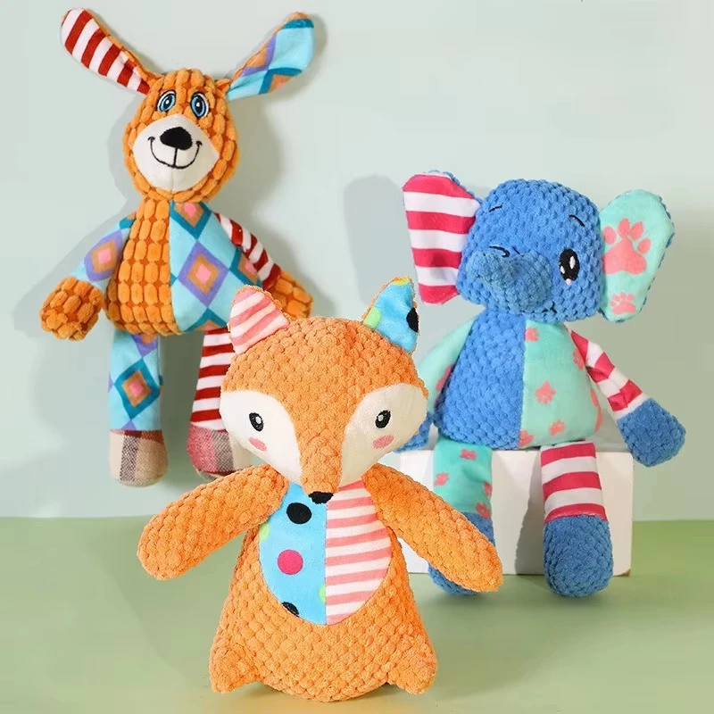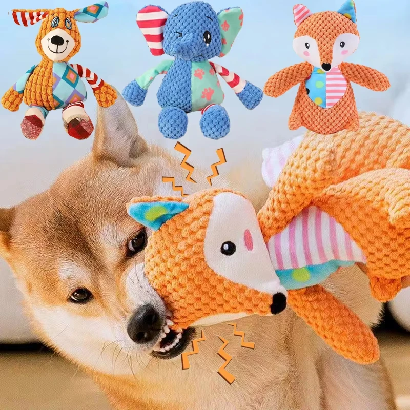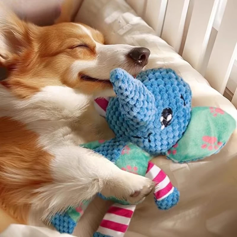 Pet Plush Toys Cute Dog Elephant Plush Chew Toy Squeaky Bite-Resistant Puppy Teething Training Dog Supplies Teeth Cleaning